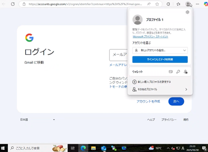 図9 攻撃者が起動したMicrosoft EdgeのGmailログイン画面
