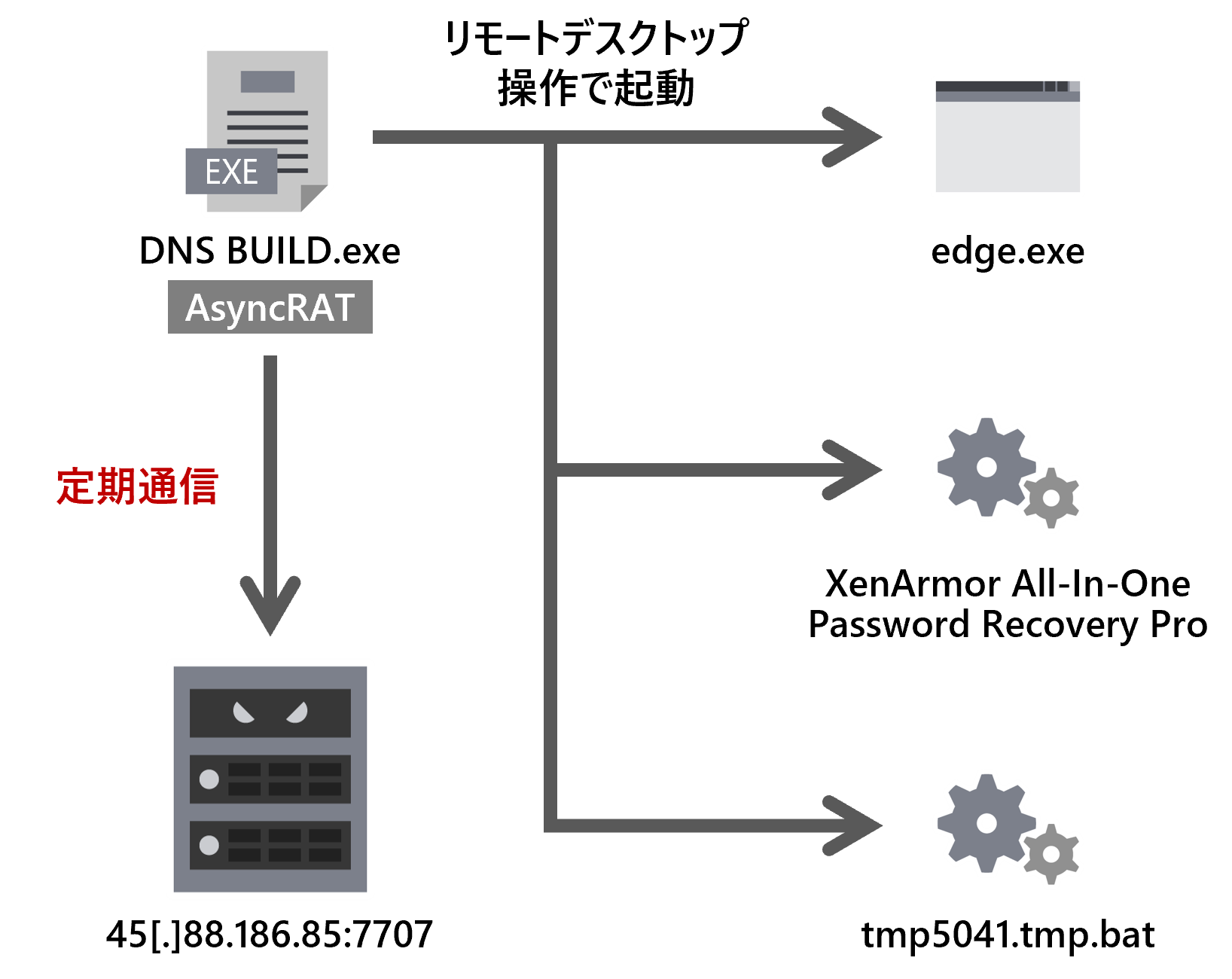 2025年2月および5月にAsyncRATの検体4件を解析しました.国内セキュリティベンダのブログでQuasarRAT関連検体を添付したばら撒き型メールの情報を入手し,標的に日本を含むキャンペーンである可能性があるため選定しました [4].これらの検体では,実行後に攻撃者による次のようなリモートデスクトップ操作が行われました.