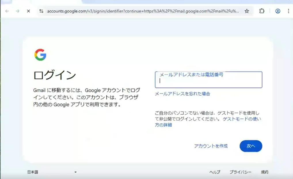 図8 攻撃者が起動したGoogle ChromeのGmailログイン画面